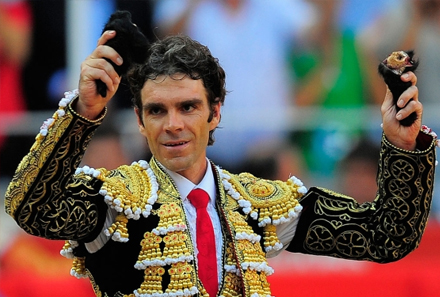 José Tomás, med to 'trofæer' i hænderne - et syn som får dyreaktivister til at koge