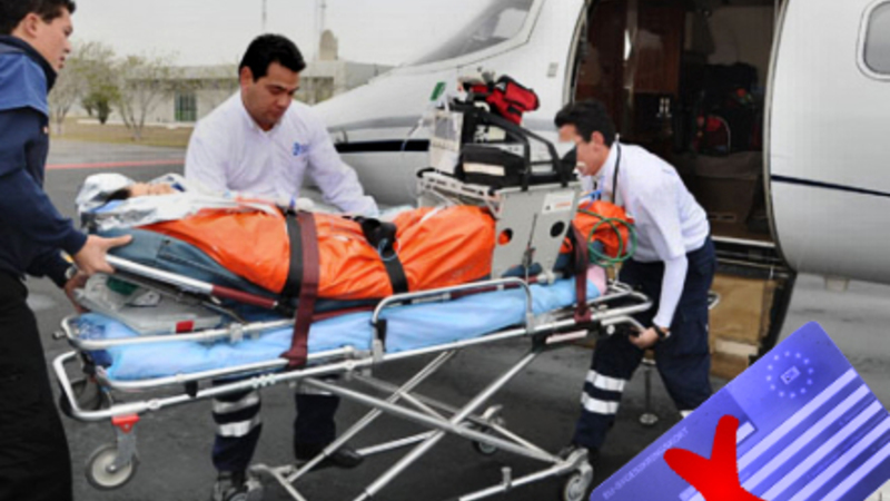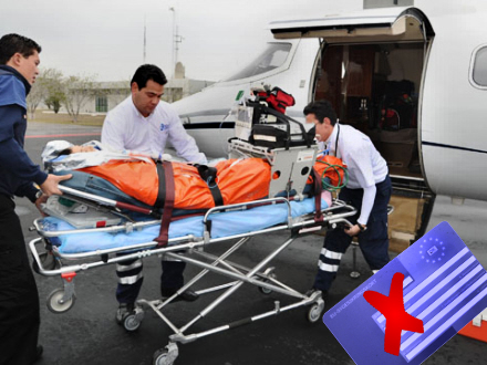 Tidligere dækkede den danske sygesikring også hjemtransport ved tilskadekomst. Det blev dog lavet om i 2008, så ingen form for hjemtransport er nu dækket gennem den offentlige sygesikring i Danmark. Hverken med det gule eller blå sygesikringskort.