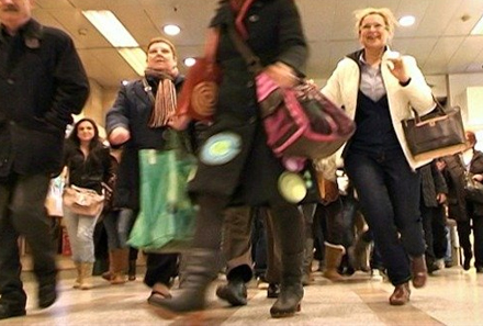 Og der er mange penge at spare på nedsatte varer. Udsalget er startet med kæmperabatter på 50, 70 og endog 80 procent på tøj og tilbehør, og det betød, at der var sort af mennesker i de største indkøbscentre på udsalgets første dag.