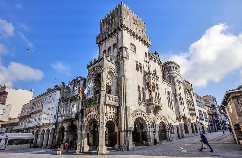 - Et eksempel på Antonio Palacios pompøse arkitektur, kombineret med lokal granit og modernistiske linjer.
