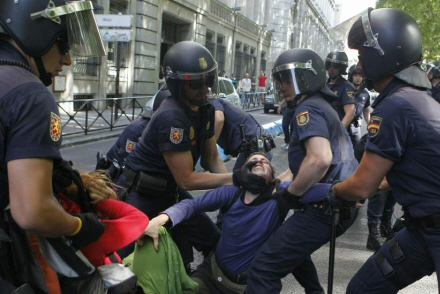 Gennem det seneste år, har der været masser af fredelige demonstrationer – specielt fra de ”forurettede” - 15M, unge arbejdsløse - der har gennemført ”sit-down-strejker”. Men den går ikke længere. Det kan udløse fængselsstraf, hvis man ikke flytter sig, når knippel-bevæbnede betjente beder en om det.