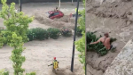 VIDEO: Klamrer sig til biler og træer for at undgå at blive taget af vandmasserne