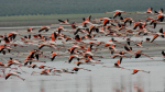 Langbenede lyserøde flamingoer lever livet