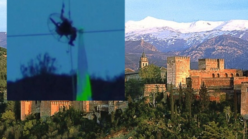En paraglider slap på mirakuløs vis for dødbringende stød, da han i fire timer hang i en højspændingsmast i Granada. Den skrækslagne span...