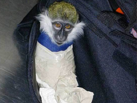 Men det sker også, at rejsende bliver taget med noget levende i lufthavnen. En dame blev anholdt fornylig, da lufthavnsmyndighederne fandt en abe i hendes håndbagage ved et rutinetjek.