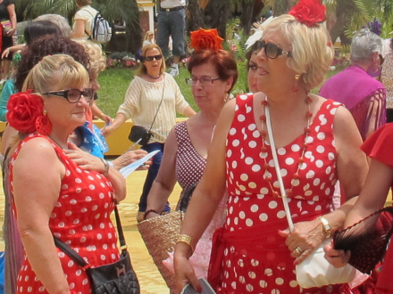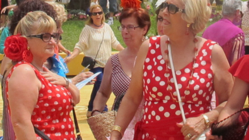 Her kan du iagttage bedårende kvinder i farvestrålende flamenco-drager, pyntet til den sidste detalje, som svæver omkring med den der ”gracia”; den helt særlige charmerende og graciøse elegance, som kun andalusiske kvinder har. Og her er det helt ligegyldigt om det er tykke, tynde, gamle, unge, lave eller høje. Det er noget alle har.