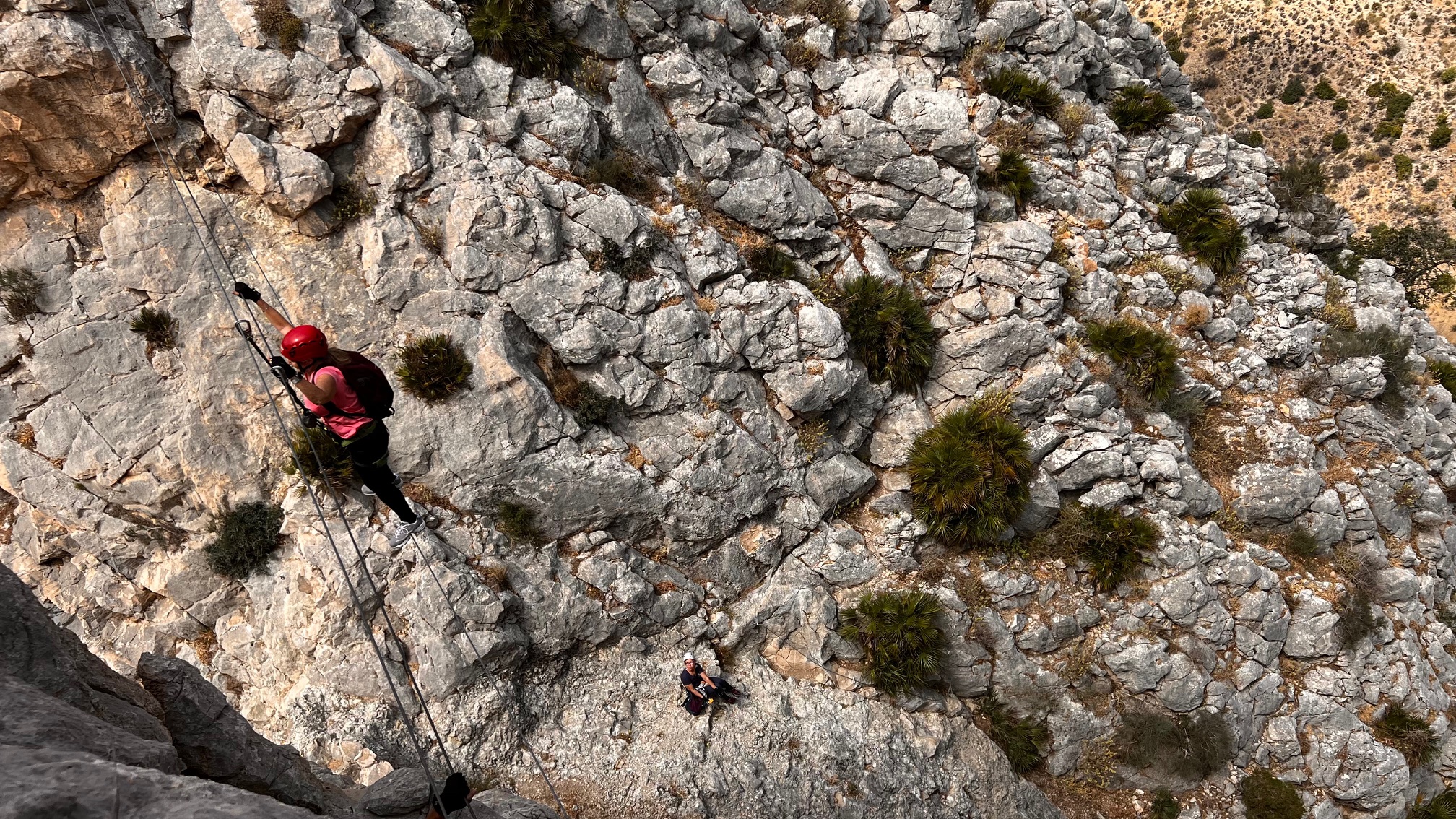 En vía ferrata er en klatrerute, der er sikret med kabler hele vejen, så man altid er 'klikket' fast