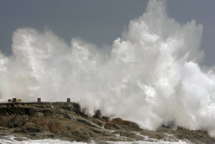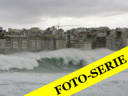 En kæmpe bølge smadrer ind over land i ved Coruña