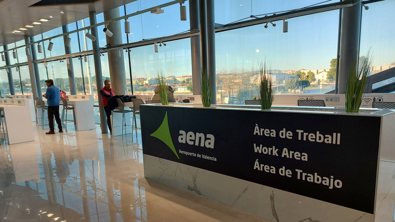 Passagerer i Valencias lufthavn kan nu nyde godt af et nyt arbejdsområde på første sal i terminalbygningen, lige efter sikkerhedskontrollen og tæt på den regionale terminal.