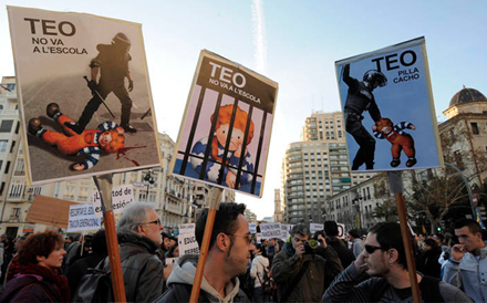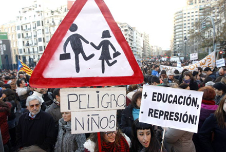Der er skåret ned på undervisningsbudgetterne i Valencia, hvilket betyder færre lærere og flere elever i klasserne. Der er også skrået ned på tilskud til køb af skolebøger og materiale.