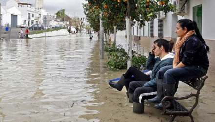 I Ecija i Sevilla Provinsen, blev 30 procent af byens gader oversvømmet, og myndighederne måtte evakuere omkring 3000 borgere, da vandstanden i floden Río Genil tirsdag steg faretruende. Men også i flere andre landkommuner er der problemer i forbindelse med den kraftige nedbør. 120 familier i Urbanización "Los Granadillos" i Utrera Kommune har nu været uden lys i over 30 timer.