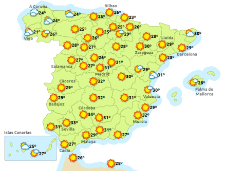 Der er hedevarsel på Costa del Sol, når kviksølvet i løbet af dagen banker op i 37 gradere. Fra klokken ti til klokken 20 er Málaga Provinsen i gult niveau, og det betyder, at man skal holde sig væk fra solen i de varme dagtimer.
