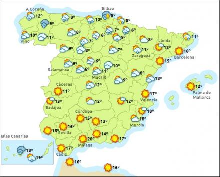 Costa del Sol får i dag letskyet vejr med svag til let vind fra nordvest og mellem 13 og 21 grader. I morgen solrigt, men en smule køligere. Det solrige vejr fortsætter i næste uge med svag til let vind fra nordvest og op til 21 grader. Men fra torsdag vender vinden over i sydøst, og det bliver mere skyet. Fredag overskyet, temperaturen falder kraftigt, og der er mulighed for en smule regn. Lørdag klarer det igen op, og resten af weekenden byder på nogen sol og mellem syv og 15 grader.