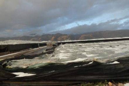 Der er sket skader på huse og bygninger, men frem for alt er landbruget hårdt ramt. Mange drivhuse og væksthuse er brast sammen og flænset i stykker i den kraftige vind og haglvejret, der har ødelagt presenninger og plastikbelægningen.
