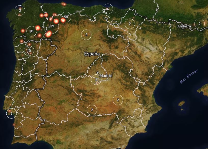 Skovbrandene er stadig aktive flere steder i primært Castilla y León, Asturien og Galicien.