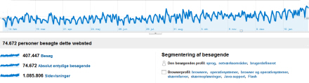Uddrag af statistik-programmet 'Google-Analytic', der analyserer alle bevægelserne hos os. Øverst kurven, der viser udviklingen over de seneste 12 måneder.