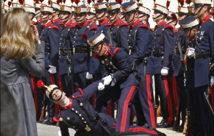 Der var allerede drama inden middagen i går. En vagt besvimede under den officielle velkomst-paraden lige foran Prinsesse Letizia.