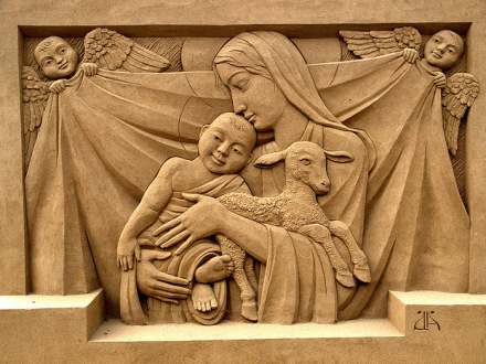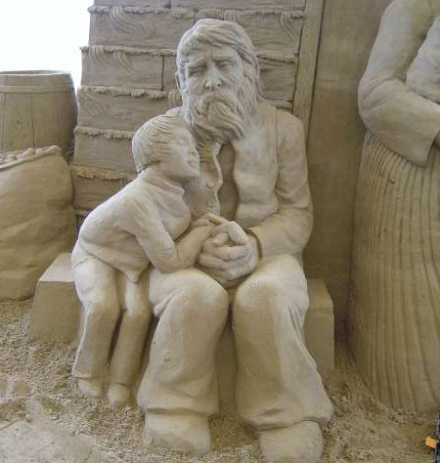 Julekrybbe i sand er så flot, at man skulle tro, at den var hugget i sten - i hvert fald ligner det ikke noget så porøst som sand. Seks mand ...