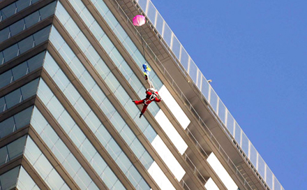 Luftens vildeste vovehalse kastede sig lørdag morgen ud fra det 200 meter høje boligkompleks "In Tempo", der ligger i den østspanske turistby Benidorm.