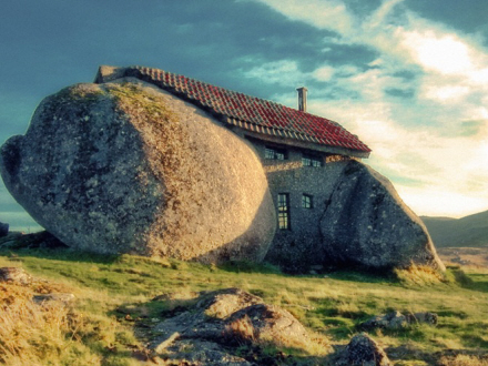 Det ligner næsten noget, der er løgn, men den er god nok, og der er faktisk mange huse i Portugal, der er bygget mellem, omkring og under kæmpe klippekonstruktioner. Byen Monsanto skulle efter sigende have mange gode eksempler på det.