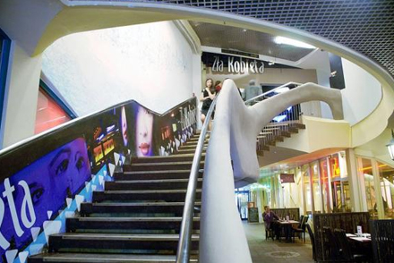 Der er masser af restauranter og butikker i det skæve hus