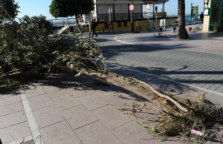 En 58-årig mand blev lørdag morgen alvorligt kvæstet, da han blev ramt af en palme-gren, som var knækket af i den hårde vind. Uheldet skete kl. 9 på Ojén-vejen, lige ved den gamle Tyrefægter-arena i Marbella. Manden blev indlagt på sygehus, men meldes uden for livsfare.
