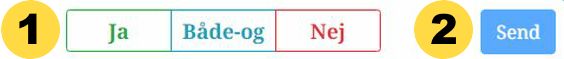 Klik i enten ‘Ja’, ‘Både-og’ eller ‘Nej’ og derefter i ‘Send’, hvorefter du får en bekræftelse på, at din mening er registreret