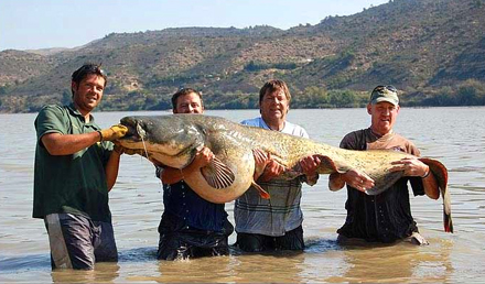 Fire glade fiskere skulle til for at vise denne kæmpe-malle, som er fanget i Ebro floden. Så hvis der bor en lille fisker i dig, er det her du skal fiske