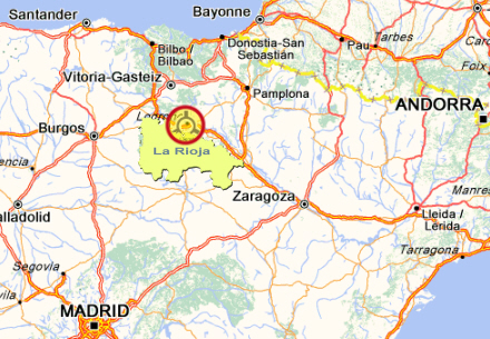 Her ligger La Rioja. Klik for at komme til interaktivt kort på ViaMichelin