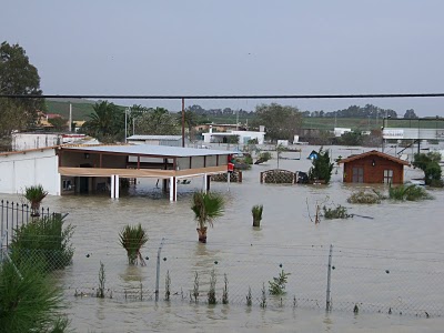 Her er der i weekenden faldet op til 130 mm. nedbør og har ført til store skader på landbruget i Chiclana.