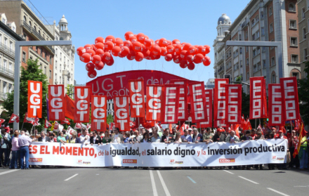 Fagforbundene UGT og CCOO demonstrerer sammen – her i Zaragoza