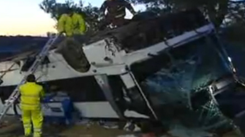 Bussen væltede og ni passagerer blev dræbt - heriblandt en 7-årige pige. Ulykken skete ved Benalmádena nær Málaga.