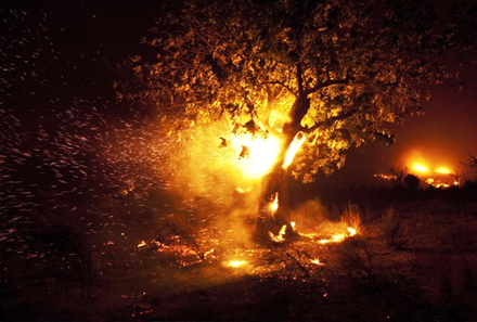 Branden opstod i et ufremkommeligt område ca. 50 kilometer nordvest for Valencia. Der er indsat 14 brandslukningsfly og 500 brandfolk i forsøget på at få kontrol med branden.