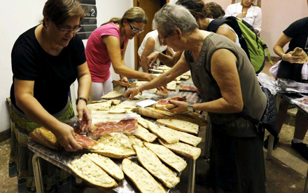 Frivillige laver 'bocadillos' til de hårdtarbejdende brandfolk