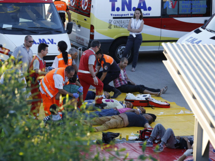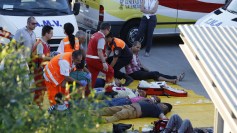 Brandfolk måtte hjælpe fastklemte passagerer ud af bussen. De mest alvorligt kvæstede blev omgående kørt til sygehuset i Alicante, mens resten blev akutbehandlet på stedet. Kun 12 personer slap uskadte fra den traumatiske oplevelse.