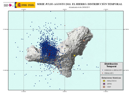 Den seismiske aktivitet i den vulkanske undergrund på øen er i løbet af de seneste dage taget kraftigt til. Der blev tirsdag registreret flere end 100 mindre jordskælv, hvor de 79 var på mellem 2 og 3,8 på Richterskalaen. Rystelserne blev registreret otte km under jordens overflade.
