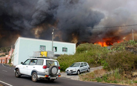 I Barranco de Benchijigua var branden i går fuldstændigt ude af kontrol og nåede på et tidspunkt til vejen ved Roque de Agando.
