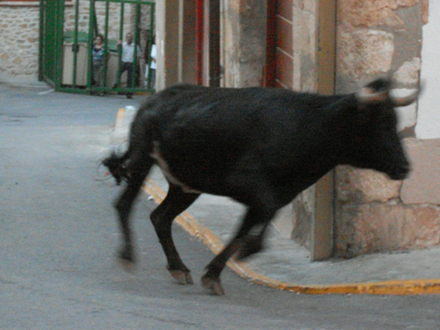 Af og til åbnede de porte og døre for at se, hvor langt tyrene var nået, og det var her den automatiske døråbner til kvindens hus svigtede. Døren stod pivåben, og en af ungtyrene løb ind gennem døren til huset, der ligger i Calle Valencia. Her fik den øje på den panikslagne kvinde, der fægtede med arme og ben, mens hun råbte om hjælp.