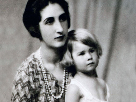 Lille Alba på skødet af sin mor, María del Rosario de Silva y Gurtubay