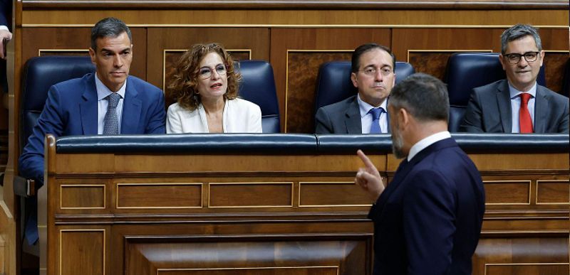 Abascal sagde, at han ved Sánchez er villig til at holde ud til enhver pris, selv demokratiets ødelæggelse, og at han har parlamentarisk støtte. Men han nægtede at blive for at høre hans løgne og tåle hans arrogance. Derfor forlod han plenarsalen efter at have kaldt ham korrupt og forræder, og da han passerede forbi regeringschefen, råbte han “usømmeligt”.