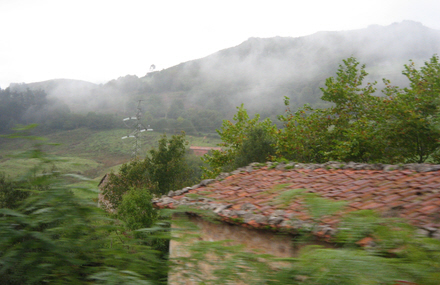 Vi kom fra Burgos og kørte ind i Asturien gennem et af de pas, der danner grænsen til Castilla y León. Bjergformationerne og frodigheden var slående. Turen havde været lang, så vi trængte til et hvil – det skete på den første venta (kro), som vi mødte.