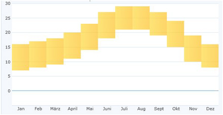 Her kan du se de gennemsnitlige højeste/laveste temperaturer gennem året