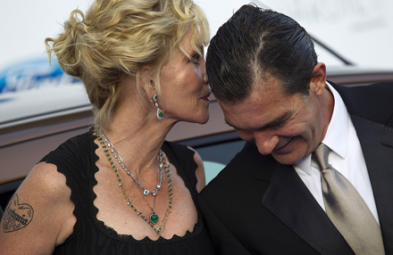 Parret hyggede sig tydeligvis. Læg mærke til, at Melanie Griffith har fået tatoveret 'Antonio' på højre arm; mon ikke, de er lidt forelskede