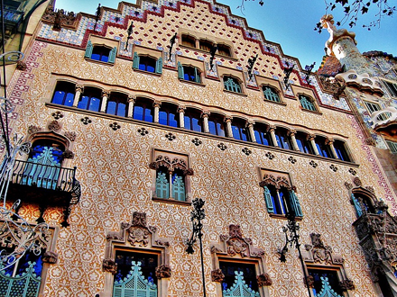 Musikhuset Palau de la Música blev indviet af Lluís Domènech i Montaner i 1908 og er et eksempel på rendyrket modernistisk eksplosion, da arkitekten her valgte at inddrage alle kunstarter; skulpturer, mosaikker, farvet glas og smedejern.