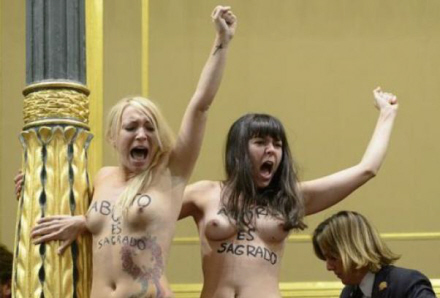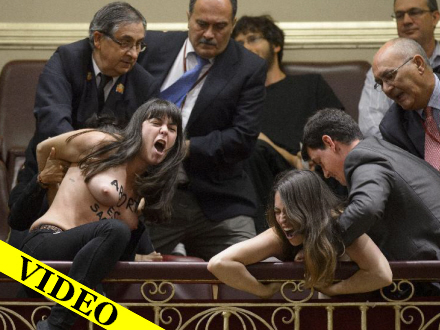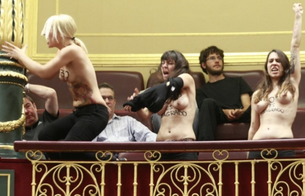 Det venstreorienterede parti Izquierda Unida gav FEMEN-demonstranterne en opbakkende klapsalve, da de blev båret skrigende ud af parlamentssalen.