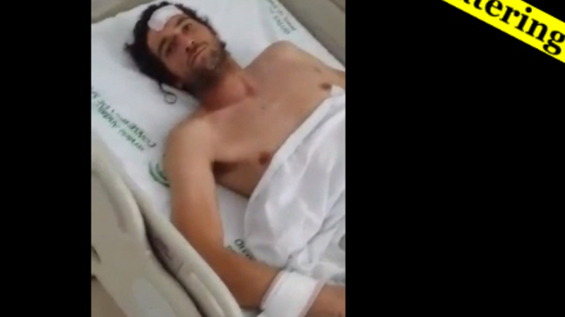 Her optog han en video af tyskeren, der ligger fastspændt til sin sygeseng samtidig med, at han hældte skældsord ud over manden.