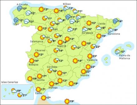 Vejret i Spanien, fredag kl. 15:00