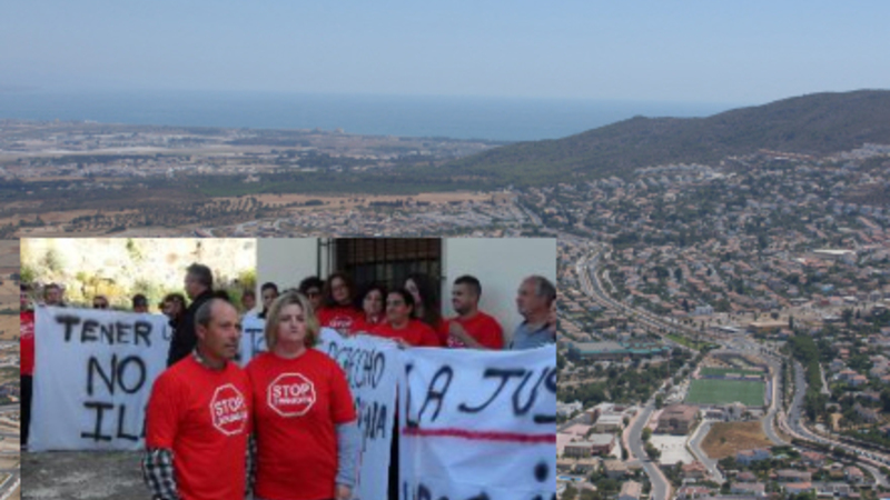 Det var familie og venner til ejendommens ejere og medlemmer fra foreningen Plataforma Stop Derribos der var gået sammen om at protestere mod kravene om nedrivning af ulovligt byggeri.