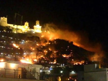 En gnist fra noget fyrværkeri antændte kort før klokken 23:30 noget knastørt krat lige udenfor borgen El Castillo i Cullera, og i løbet af få minutter stod flammerne højt.