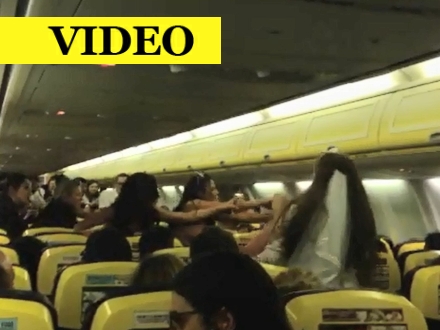 En gruppe unge kvinder var på vej til Barcelona for at ”tage afsked” med 30-årige Kelly Lloyd, som skulle giftes. Men de endte med at ryge i totterne på hinanden, 40 minutter inden flyet overhovedet landede i den catalanske hovedstad.